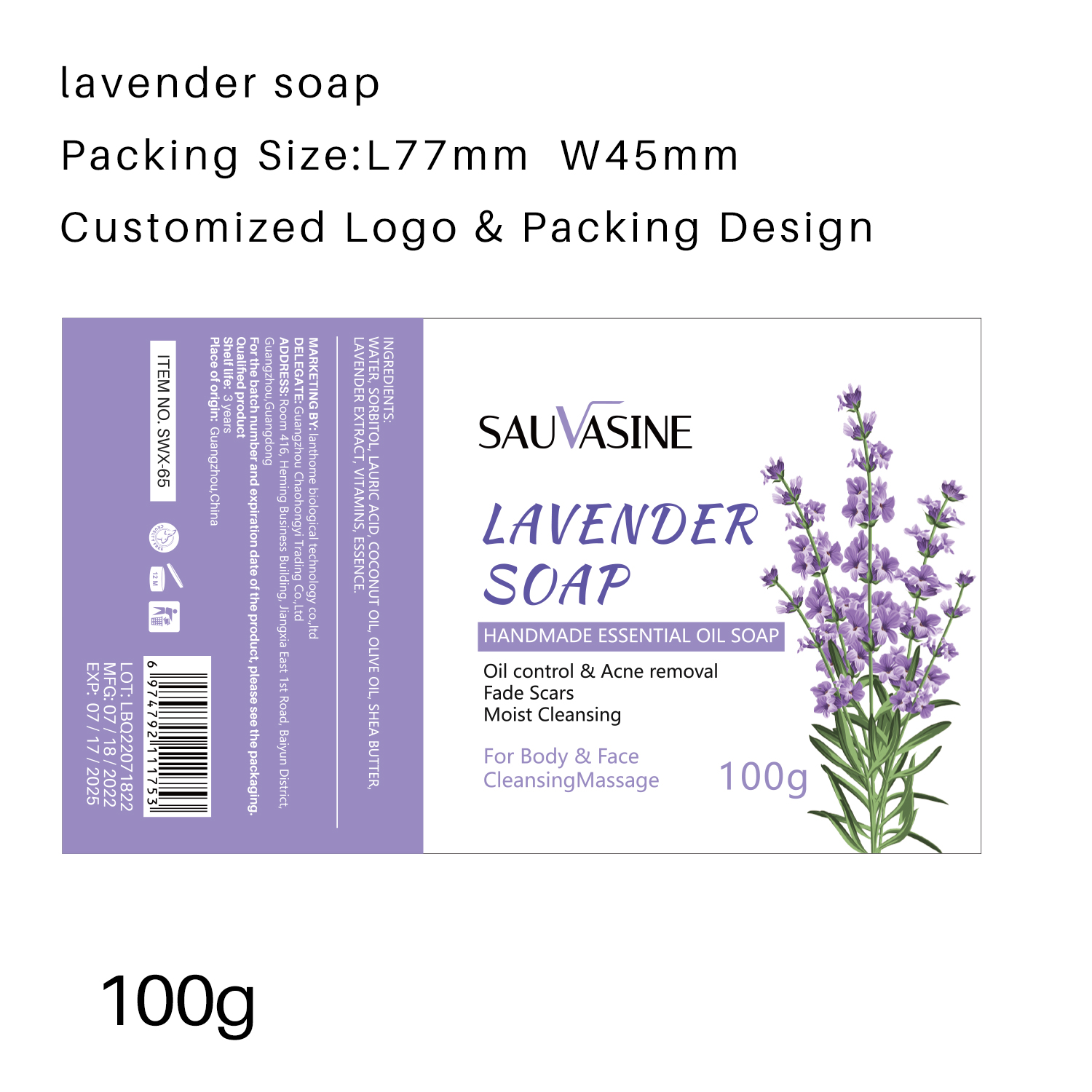| 颜色 | 薰衣草味lavender flavor |