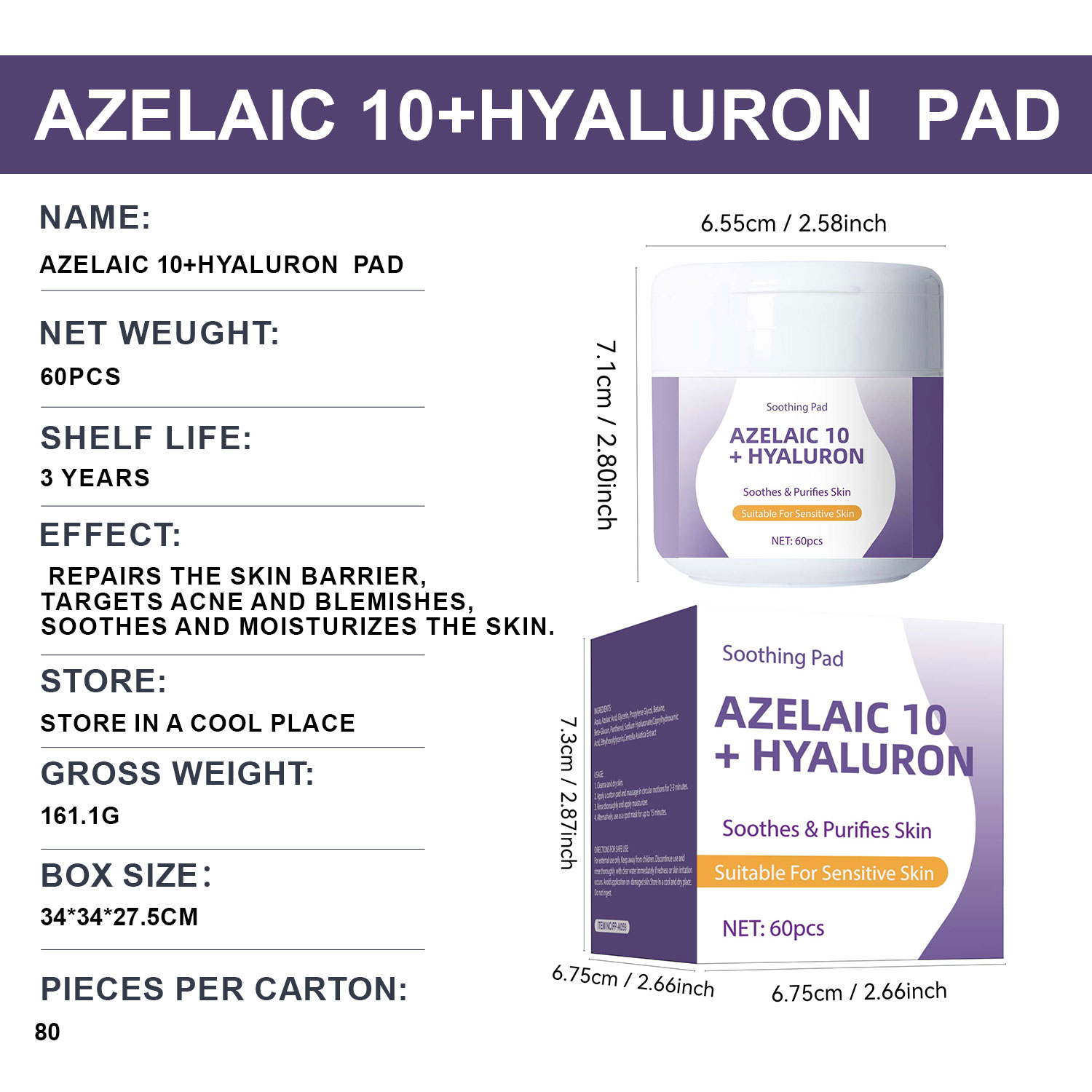 壬二酸10+透明质酸棉片