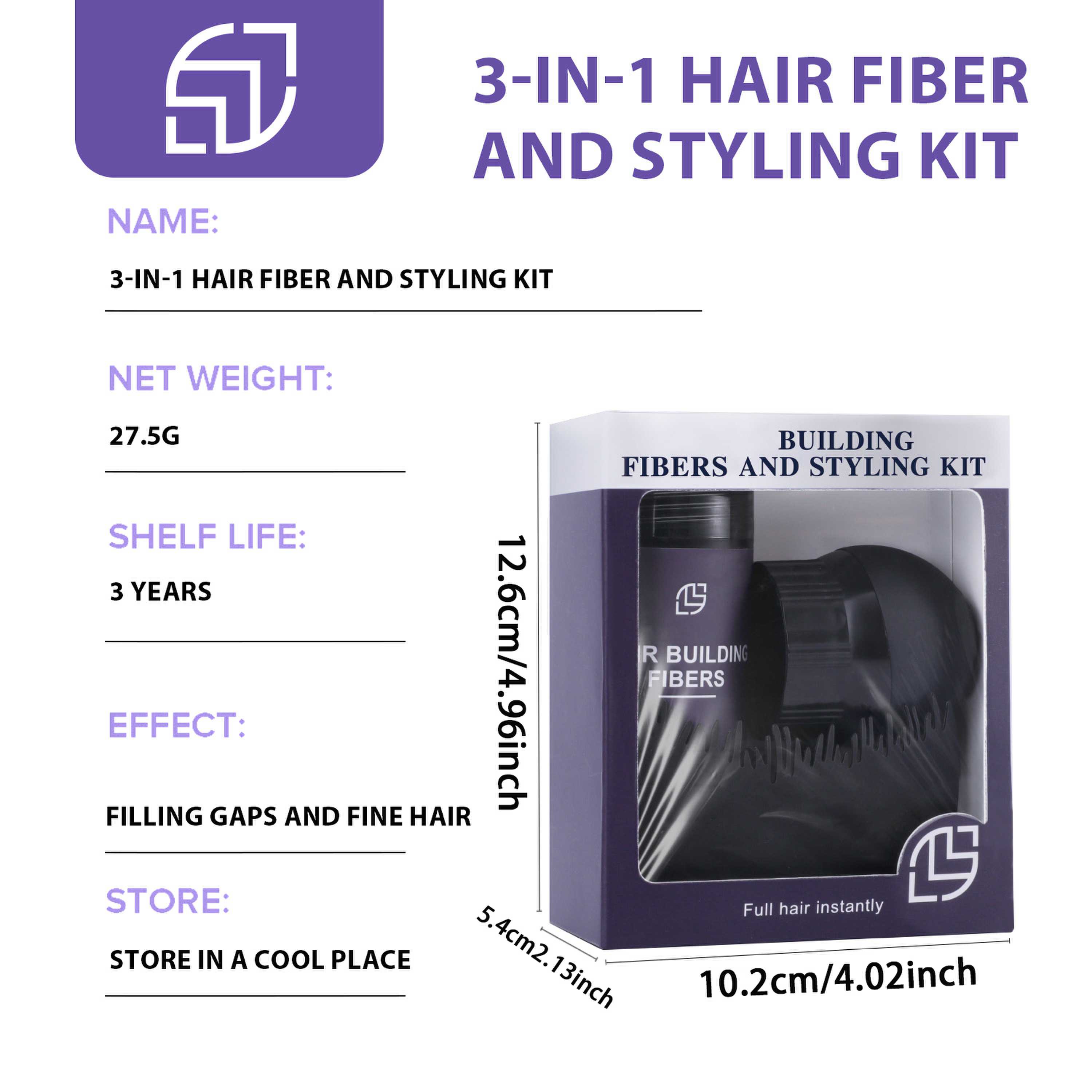 3 合 1 头发纤维和造型套装